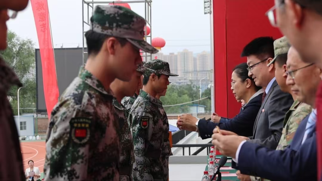 会上,曹洁代表学校为承训部队授旗,全体新生在授旗仪式上高呼“请党放心,强国有我”的口号,展现了新时代城院学子的责任与担当。