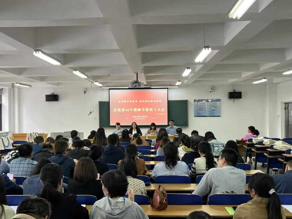 环境与城市建设学院开展了以“弘扬教育家精神,加快建设教育强国”为主题的庆祝第40个教师节教职工大会。大会分为专题学习、交流发言、感谢师恩三个主题。