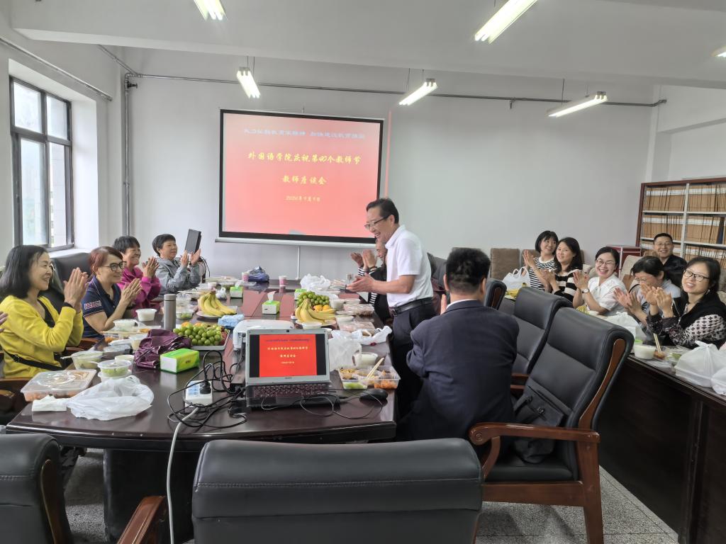 外国语学院开展了以“大力弘扬教育家精神,全力促进学院高质量发展”为主题的庆祝第四十个教师节活动。退休及在职教职工欢聚一堂,进行了餐叙及茶话会。青年教师代表向退休教师献上了鲜花,表达了对前辈教师的敬意和祝福。