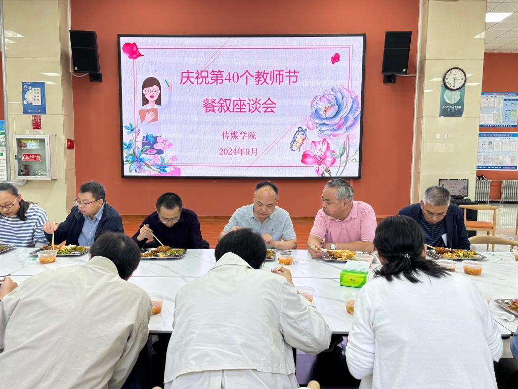 传媒学院开展以“弘扬教育家精神”为主题的庆祝第四十个教师节餐叙座谈会。老师们分享了入职以来的工作感想与体会,表示将秉承学院优良传统,尽快转变角色及工作思路,提高工作效率,紧密配合学院的管理与发展,全力做好服务工作。