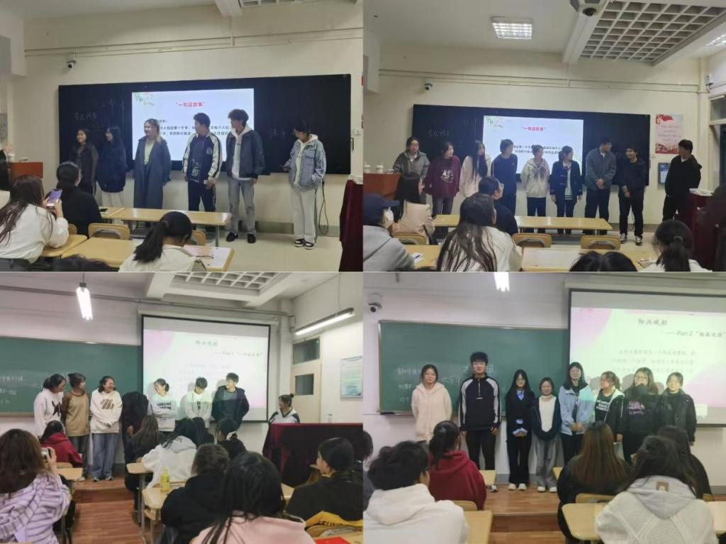 本次团体辅导活动从两个部分展开,活动一以“破冰之旅—寻友挑战”为主题,通过“桃花多多开”和“碎片拼图”游戏帮助新生相互认识,彼此熟悉,打破陌生感。同学们在“桃花多多开”游戏中,围成一圈,通过快速抱团的方式增进了解;“碎片拼图”则要求同学们寻找拼图碎片的匹配者,共同完成一幅完整的图片。活动不仅锻炼了大家的团队协作能力,也让同学们在游戏中结识了新朋友,共建融洽和睦的交友环境。活动二以“破冰剧社”为主题,同学们通过即兴创编句子、创造场景,相互配合,提升自我认知和自信心,还能增强团队的协作能力。在每轮活动结束后,同学们以小组为单位,围坐一圈,热烈讨论并分享活动中的感受和想法。