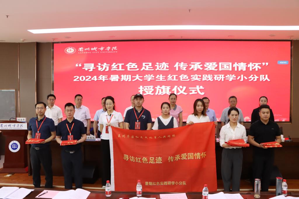 参会嘉宾分别为2024年“寻访红色足迹、传承报国情怀”暑期大学生红色实践研学小分队授旗。