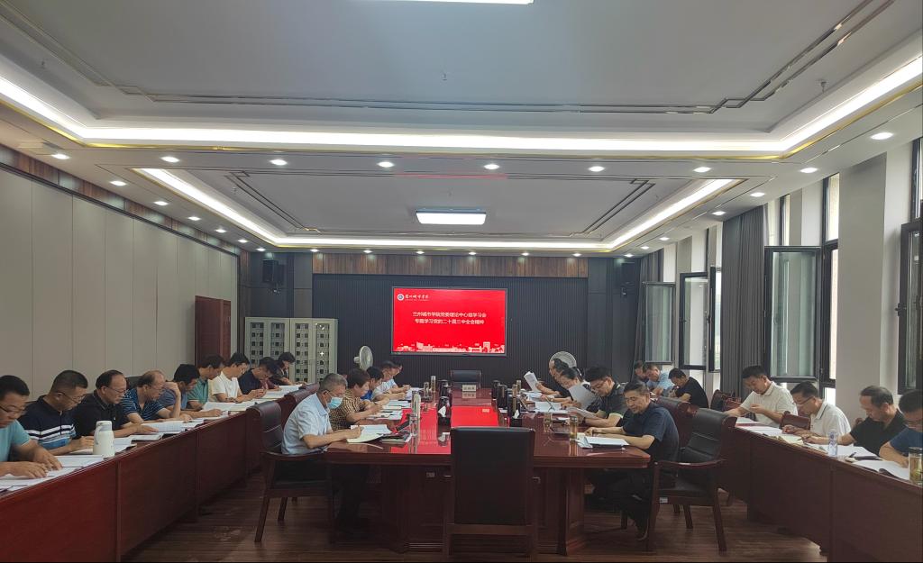 2024年7月26日上午,学校在校本部逸夫图书馆五楼会议室召开党委理论学习中心组学习会,专题学习党的二十届三中全会精神。全体校领导、校党委常委,校党委委员,校纪委委员,党委职能部门负责人参加会议。校党委书记曹洁主持会议。