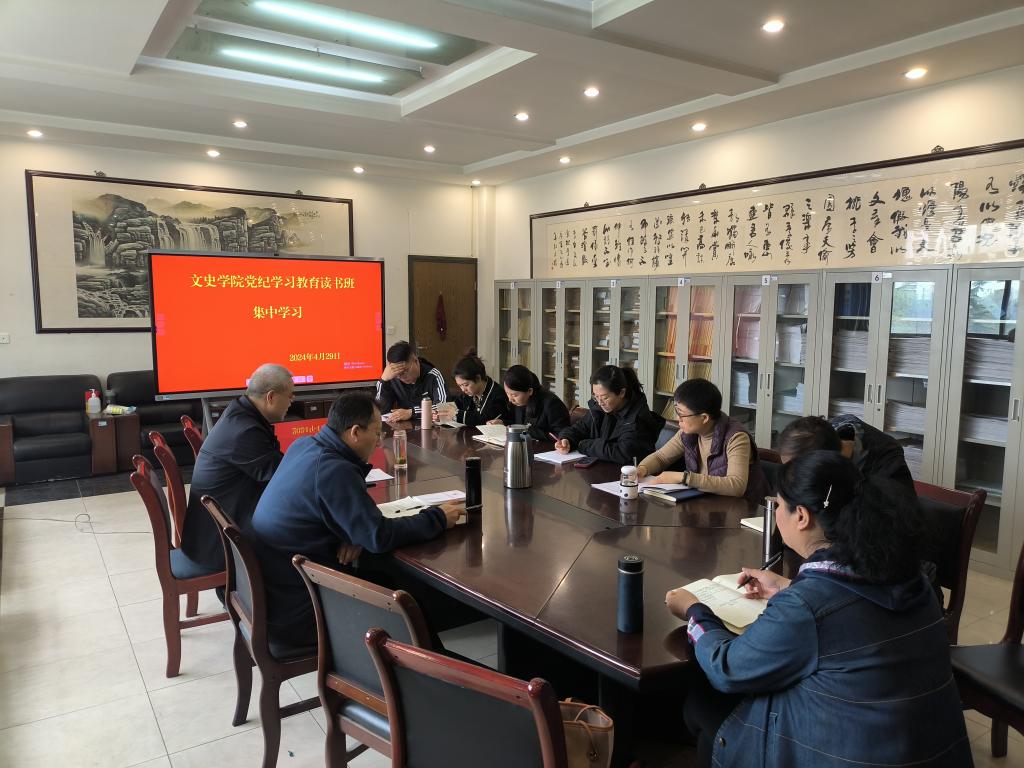 4月29日上午,文史学院党委召开党委理论学习中心组扩大会暨党纪学习教育专题读书班第一次集中学习,学院党政班子成员、党委委员、党支部书记参加会议,学院党委书记负责人主持会议。