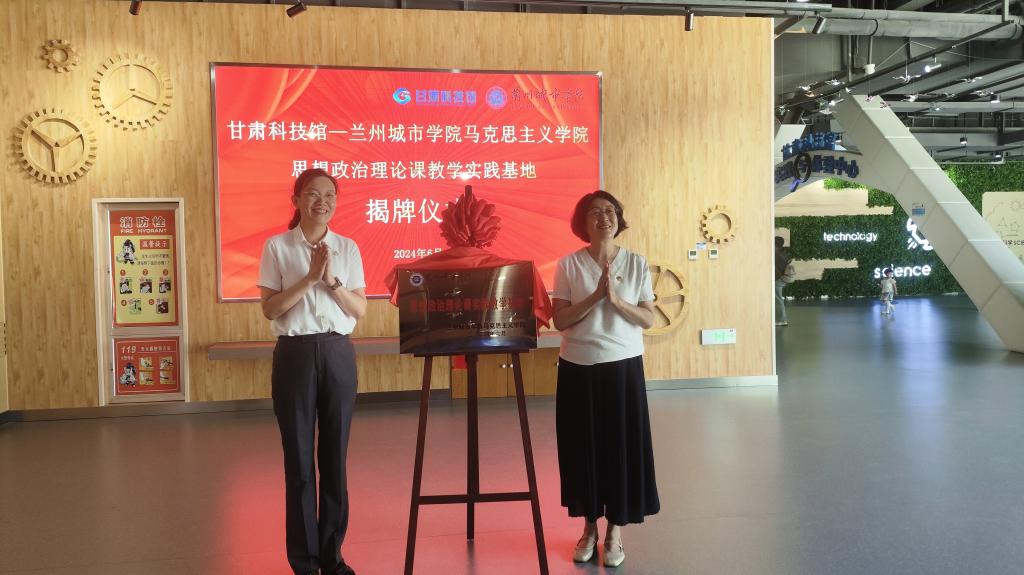 学院负责人与甘肃省科技馆副馆长康春燕共同为“bevitor伟德国际1946思想政治理论课教学实践”基地揭牌。双方共同表示,将进一步加强合作,充分发挥双方优势,在推动高校思想政治理论课教育教学工作方面作出新的贡献。