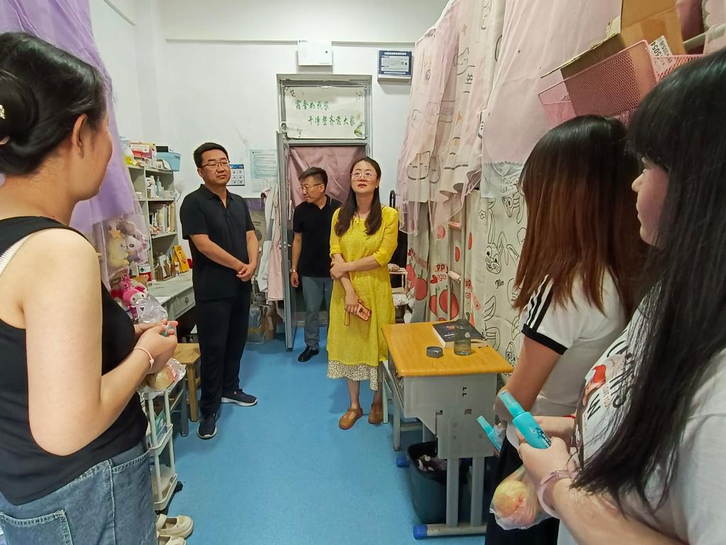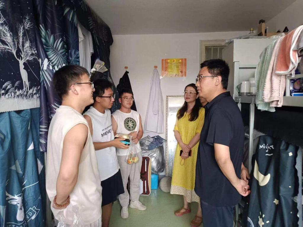传媒学院负责人和考研留校临时班主任及学工办负责人走进宿舍走访看望暑期因考研留校复习的学生。走访中老师们详细询问了大家的住宿环境、生活作息以及面临的学习困难。他们叮嘱同学们要注意防暑以及个人卫生和宿舍安全,保持良好的生活习惯,合理安排休息时间,以充沛的精力投入到考研复习中。考研留校的临时班主任与同学们交流了考研复习的进度和计划,针对同学们在复习过程中遇到的问题和困惑,也给予了耐心的解答和指导。通过此次慰问,学院进一步了解考研学生的学习生活状况,为他们提供了更加精准的服务和保障。同时坚定了全体考研同学的信心,希望同学们以最佳状态复习备考,迎接挑战!