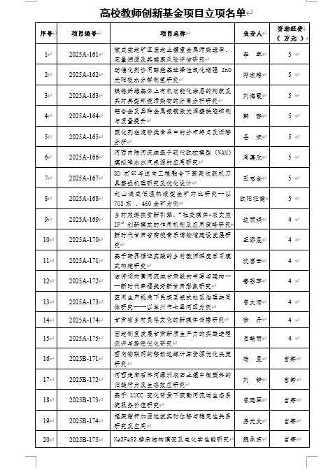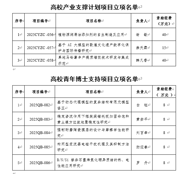 近日,甘肃省教育厅2025年教育科技创新项目立项结果公布,伟德共有38项课题获准立项,资助总经费达203万元。其中,高校产业支撑计划项目3项,资助经费95万元;高校青年博士支持项目5项,资助经费40万元;高校教师创新基金项目30项,资助经费68万元。