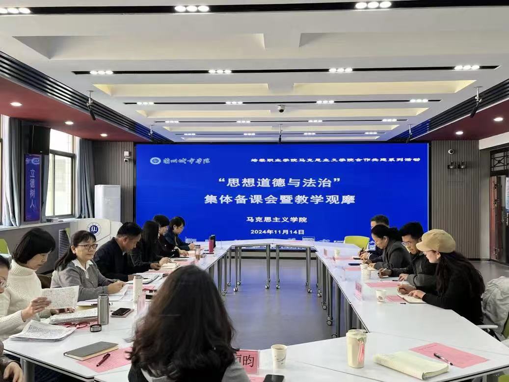 同日下午,“思想道德与法治”集体备课会暨教学观摩在校本部博文楼思想政治教育VR体验中心举行。李晓霞代表培黎职业学院马克思主义学院向学院赠送了书籍。双方教师进行了深入交流探讨,一致认为要讲好“思想道德与法治”课,必须用好课堂教学主渠道,满足学生发展需求和期待,实现“知识传授”与“价值引领”有机统一,帮助学生树立正确的世界观、人生观、价值观。共同表示双方将进一步加强共建,携手并进,进一步加强交流与合作,共同推进和提升两院思政课建设的质量与水平,书写思政育人新篇章。第二届甘肃省大中小学思政课教师“大比武”教学展示二等奖获奖教师进行了《思想道德与法治》课程教学观摩,以“法”的渊源为导入进行教学环节分享,案例详实、循循善诱,并从学情把握、教学设计、思政育人三个方面就如何打造一堂生动而富有实效的思政课作了讲解。