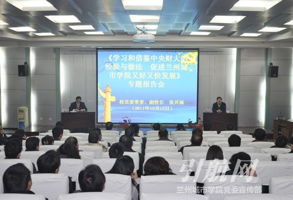 张兴福在报告中结合自己于2011年3月至2011年7月在中央财经大学挂职锻炼期间的体会和思考,从发展条件上的地缘优势、人才资源上的聚集优势、学科结构上的引领优势、科学研究上的领先优势、国际合作上的率先优势、经费投入上的政策优势、信息资源上的聚合优势、社会资源上的吸收优势等八个方面详细分析了部属院校的发展优势与伟德的发展差距。他指出,中央财经大学在管理上具有以下特点:思想观念新、事业胸怀宽广,领导水平高、决策科学民主,办事有章法、管理运行规范,管理效率高、工作富有创见,爱心洒校园,处处以人为本。上述特点和中央财经大学在管理、科研和教学等方面的先进做法值得伟德认真学习借鉴。他通过总结中央财经大学先进的办学理念和发展经验强调指出,先进的办学理念是确保学校发展的思想基础、坚强的领导班子是引领学校发展的核心力量、优质的人才资源是推动学校发展的根本保证、鲜明的学科优势是支撑学校发展的基础条件、雄厚的科研实力是促进学校发展的重要手段、扎实的人才培养质量是实现学校发展的根本标准。