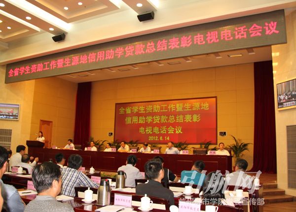 为进一步总结近五年来甘肃省学生资助工作暨生源地信用助学贷款工作取得的成绩和积累的经验,推动学生资助工作深入开展,6月14日,甘肃省学生资助工作暨生源地信用助学贷款总结表彰会议在省政府办公厅综合楼一楼电视电话会议厅召开。甘肃省副省长郝远、教育部全国学生资助管理中心主任张光明、国家开发银行评审三局副局长晁兵和甘肃省教育厅、财政厅、银监局等部门负责人出席会议并讲话。