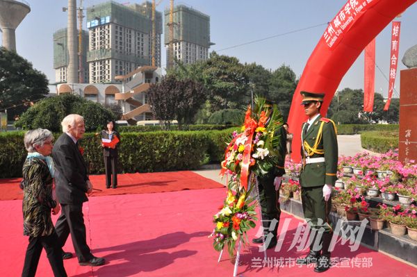 纪念大会结束后,与会领导和嘉宾前往培黎校区,向路易・艾黎先生塑像敬献了花篮,并参观了培黎展览馆。