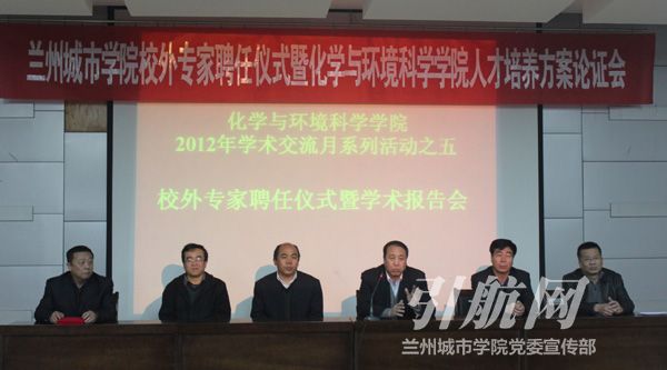 12月7日下午,作为化学与环境科学学院2012年教学主题活动月的重要内容,bevitor伟德国际1946校外专家聘任仪式暨化学与环境科学学院人才培养方案论证会在西校区第二学术报告厅举行。校党委常委、副校长刘举科,中国石油兰州石化公司副总工程师王福善,白银市环保局局长、总工程师李巨忠,兰州一中副校长金东升出席聘任仪式。