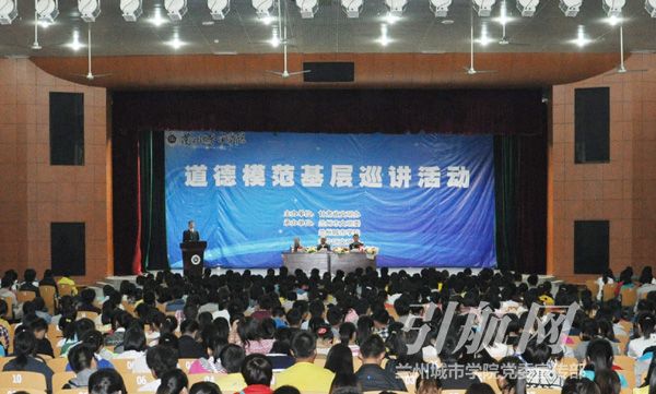9月15日下午,“最美夫妻”李成环事迹报告人龚大锬,兰州市公安局交通治安分局副局长、第三届甘肃省道德模范康岸桥,金昌市金川集团公司退休职工、第三届甘肃省道德模范李洪启来校开展道德模范基层巡讲活动。甘肃省文明办未成年人思想道德建设处处长董平,兰州市文明办副调研员赵培仕和伟德党委常委、副校长马振林出席了巡讲活动。伟德中层干部代表及文学院、数学学院、城市经济与旅游文化学院2013级新生1000多人聆听了巡讲。