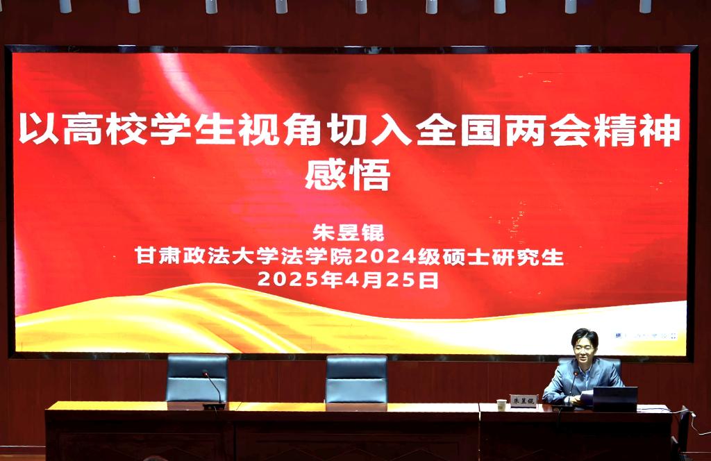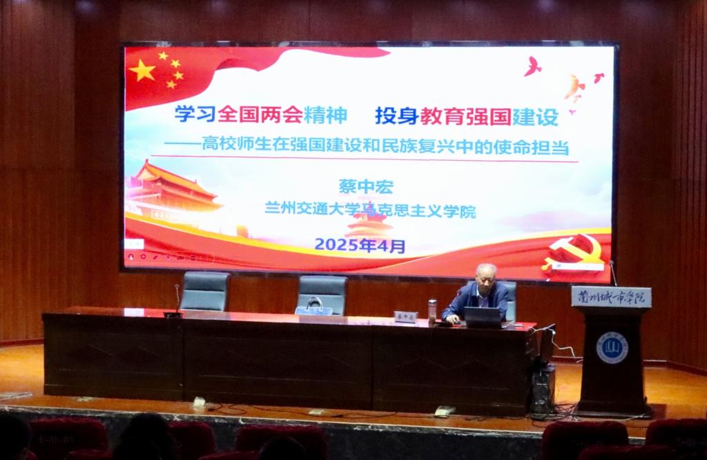 为全面深入学习领会习近平总书记在全国两会期间发表的系列重要讲话精神和全国两会通过的报告和文件精神,按照省委教育工委统一部署,425日下午,学校举办“理响校园·培根铸魂”全国两会精神示范性宣讲活动。兰州交通大学马克思主义学院蔡中宏教授、甘肃政法大学法学院2024级硕士研究生朱昱锟应邀做宣讲报告。会议由党委宣传部负责人主持。