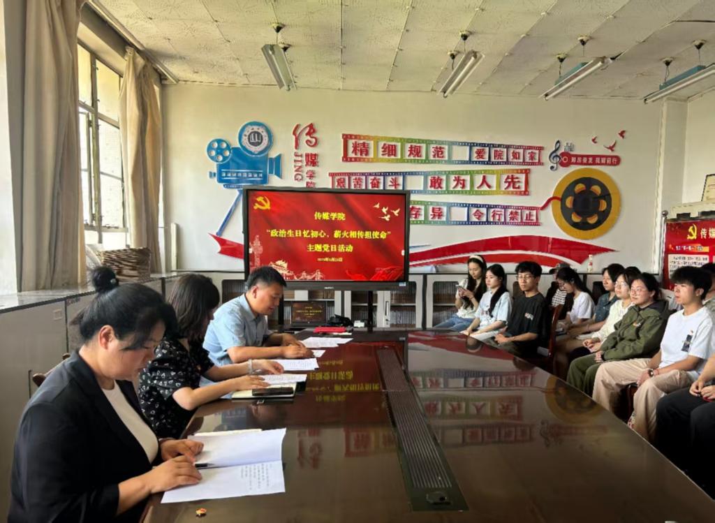 为庆祝中国共产党成立104周年,6月26日传媒学院学生党支部开展“政治生日忆初心,薪火相传担使命”主题党日活动。学院党委负责人,学生党支部书记、学生党员、预备党员参加活动,共同回顾入党初心,传承使命担当。