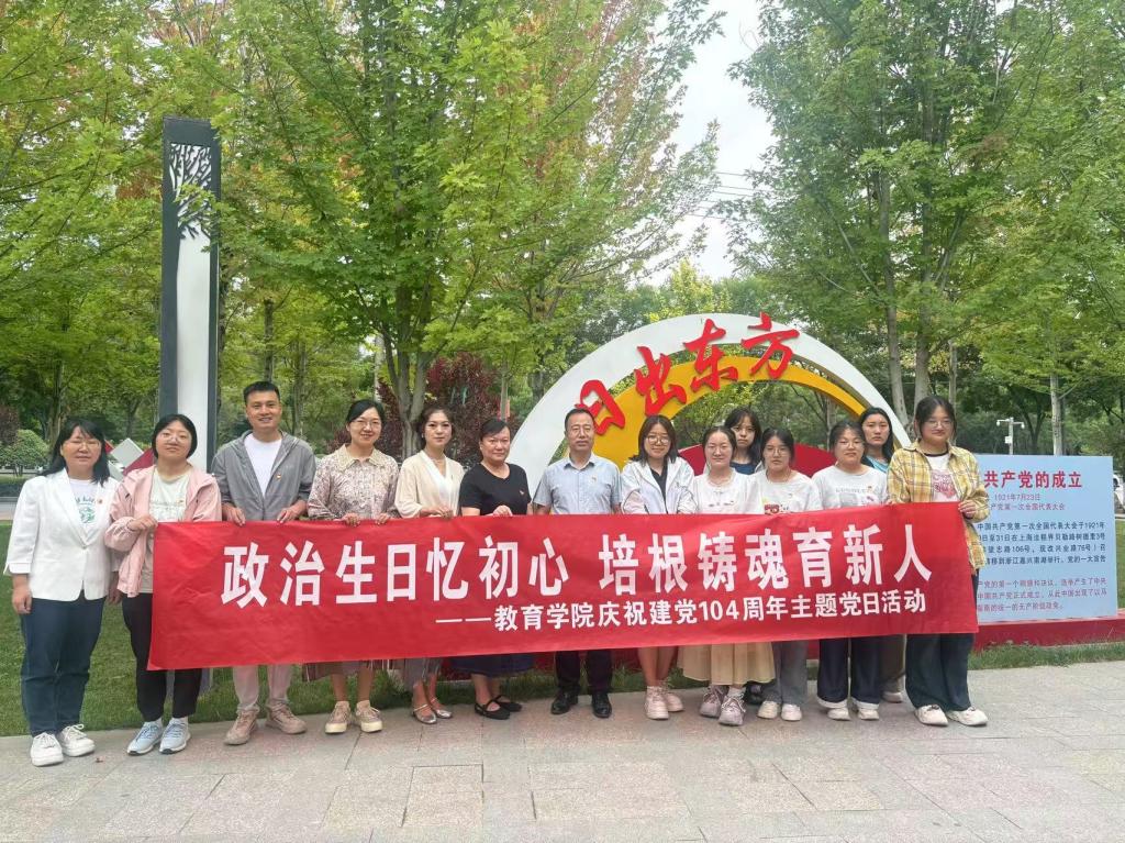 为庆祝中国共产党成立104周年,强化党员身份意识,凝聚育人使命共识,71日,教育学院党委组织教职工党员赴安宁区孔家崖党史游园广场,开展“政治生日忆初心 培根铸魂育新人”主题党日活动。