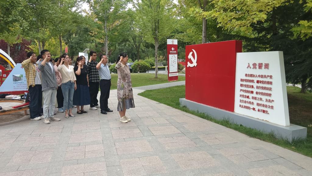 活动伊始,在党史游园广场的红色文化长廊前,教工党支部书记带领新老党员庄严宣誓。新党员首次入党宣誓铿锵有力,老党员重温入党誓词信念如磐。此次宣誓仪式积极响应校党委关于“五个一次”活动的要求,就近就便利用红色资源,引导党员铭记初心,激励全体教师牢记“为党育人、为国育才”的终身使命。