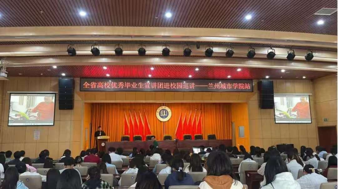 【4月16日】由省教育厅主办的“全省高校优秀毕业生宣讲团进校园巡讲活动”报告会在学校图书馆6楼国际会议中心举行。