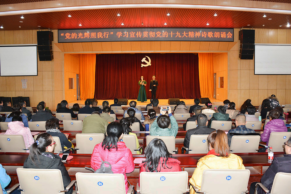 为深入学习宣传贯彻党的十九大精神,用习近平新时代中国特色社会主义思想武装头脑、指导实践、推动工作,增强党员干部的凝聚力、向心力,12月15日,机关党委举办了“党的光辉照我行”学习宣传贯彻党的十九大精神诗歌朗诵会。校领导莫超、牟录贵和机关全体干部参加活动,通过高雅深情的诗歌朗诵会学习党的十九大精神,经受了一次生动的爱党爱国、共筑中国梦的教育。