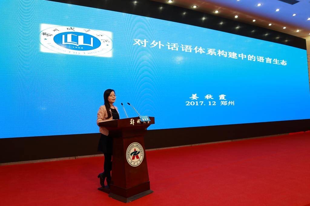12月16日至17日,由中国翻译协会、河南省人民政府外事侨务办公室、《中国翻译》杂志社、郑州大学等单位共同举办的“中国首届外交话语及外事外交翻译研讨会暨全国首届外事外交翻译大赛颁奖典礼”在郑州大学主校区召开。伟德副校长姜秋霞教授应邀参加会议为获奖选手颁奖,并作了题为“对外话语体系构建中的语言生态”的主旨报告。