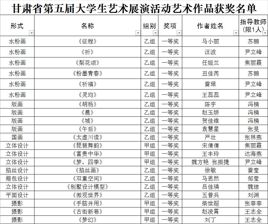 日前,省教育厅公布了全省第五届大学生艺术展演活动优秀组织奖及各项目评选结果,伟德师生获得多项奖励,学校荣获“优秀组织奖”。其中,艺术表演节目类获得一等奖1个、二等奖8个、三等奖4个;艺术作品类获得一等奖26个、二等奖48个、三等奖51个;艺术实践工作坊类获得一等奖1个、二等奖1个、三等奖1个;艺术教育科研论文类获得一等奖8个、二等奖15个、三等奖2个(具体获奖名单附后)。