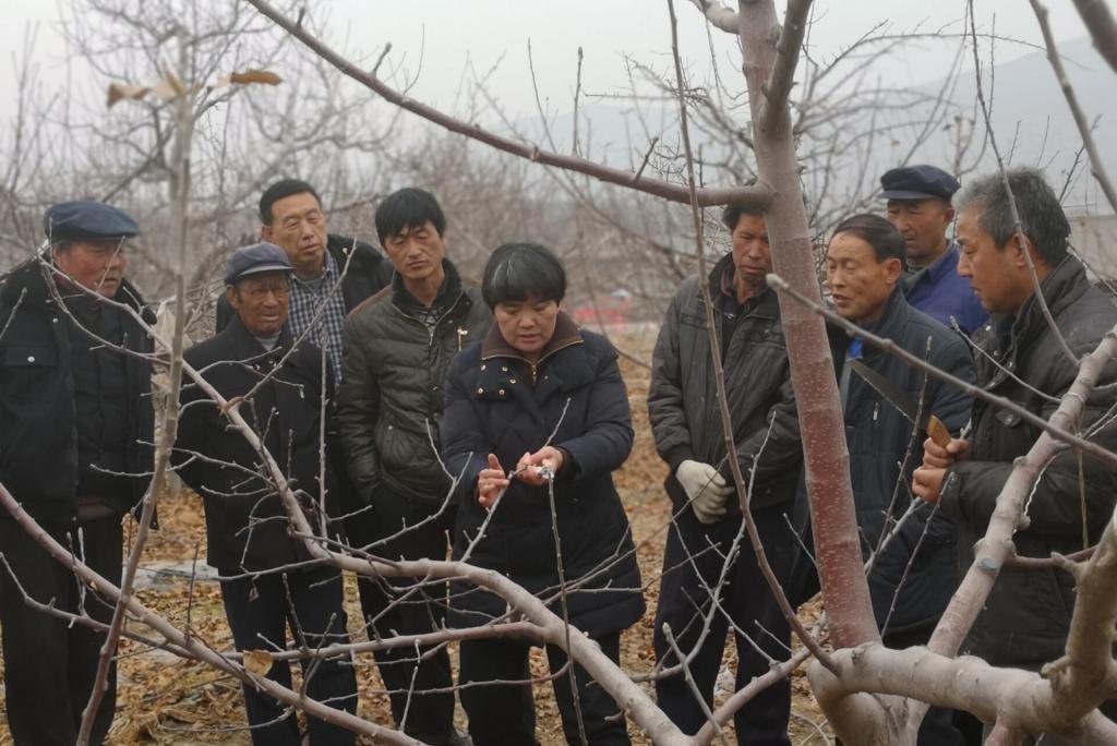 培训中,甘肃农业大学园艺学院果树科学系博士、硕士生导师王延秀从果树栽培中存在的问题、如何提高果品产量和质量等方面入手,就病虫害防治、土壤保墒及肥水管理等果园管理技术要点作了重点讲解。果农们认真听讲,并就果园管理中遇到的实际问题进行咨询。王延秀针对果树常见的腐烂病,分析了该病的根源,指出了该病的农业、化学和物理防治措施,并给出了搭配使用有机肥、无机肥的办法。培训期间,王延秀还进入果园,针对苹果树冬季修剪中树形的选择与培养,主枝、侧枝、枝组的安排与培养,短截、疏枝、回缩、缓放等修剪技术进行了示范讲解。