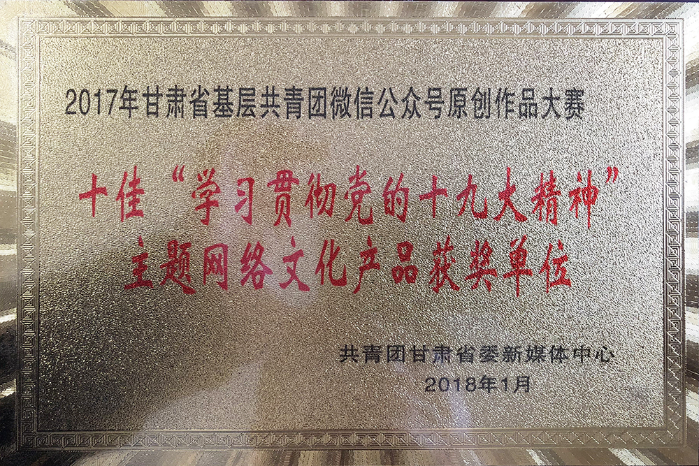 日前,共青团甘肃省委举办的2017年甘肃基层共青团微信公众号原创作品大赛获奖结果揭晓。伟德校团委推荐的 “中国梦、青春梦”系列活动荣获大赛十佳“学习贯彻党的十九大精神”网络文化产品奖。