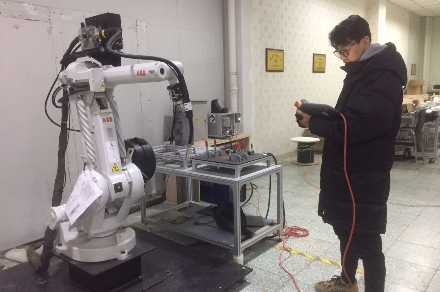 团队成员曾辉老师在北京参加培训,对机器人示教进行现场操作。