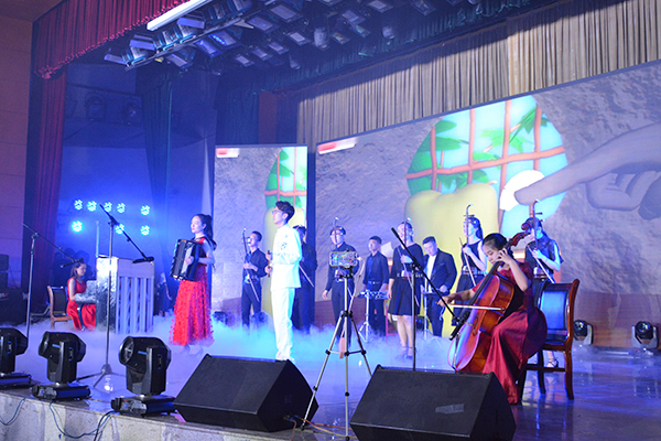 晚会以城院芳华、毕业寄语、展望未来三段视频为经,精彩节目为纬,将感恩、离别与祝福的旋律贯穿整个晚会的始终,为广大师生呈现了一场完美的视觉盛宴。晚会在幼儿师范学院带来的舞蹈《女辣可儿》中拉开帷幕。音乐学院带来的器乐合奏《二次元的旅行》,用钢琴、二胡、架子鼓、手风琴等乐器演绎了当下比较流行的网游乐曲《青蛙的旅行》和《斗地主》,将中西乐器的精髓完美融合。幼儿师范学院的表演唱《簸箕上的麻雀》获得2018年度全国大学生艺术展演表演类一等奖,此次也亮相毕业生晚会现场,演员们生动的表演、优美的舞姿、动人的歌声博得了现场观众的阵阵喝彩。国际文化翻译学院留学生带来的舞蹈《Internationl drive》,留学生们欢快奔放的性格,用异域情怀为毕业生们献上了祝福。地理与环境工程学院的诗朗诵《老师,您好!》、培黎机械工程学院的六人合唱《我们的故事》、音乐学院的舞蹈《山楂诉》,都用不同形式表达了师恩难忘、同窗珍重、祝福远航的心声。大学生艺术团带来的《厉害了,我的国》,从学生的角度表达了致敬祖国、祝福祖国、奉献祖国的诚挚深情!