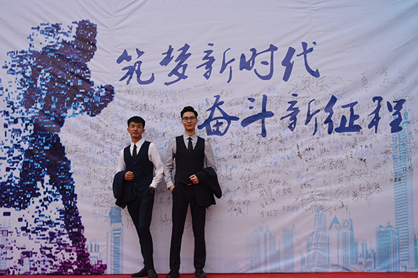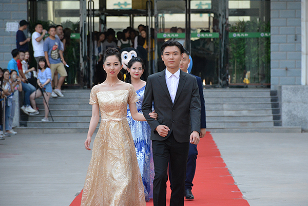 晚会开始前,校团委、学生会还在校本部礼堂楼前举行了毕业生“红毯秀”以及照片墙留影活动,来自全校18个学院的近400名毕业生代表以学院为方阵,身着精美礼服,或宿舍同行、或同窗结伴,阳光靓丽的走过红毯,并在签名墙上签名、合影留念,成为2018毕业季最引人注目的一道风景线。