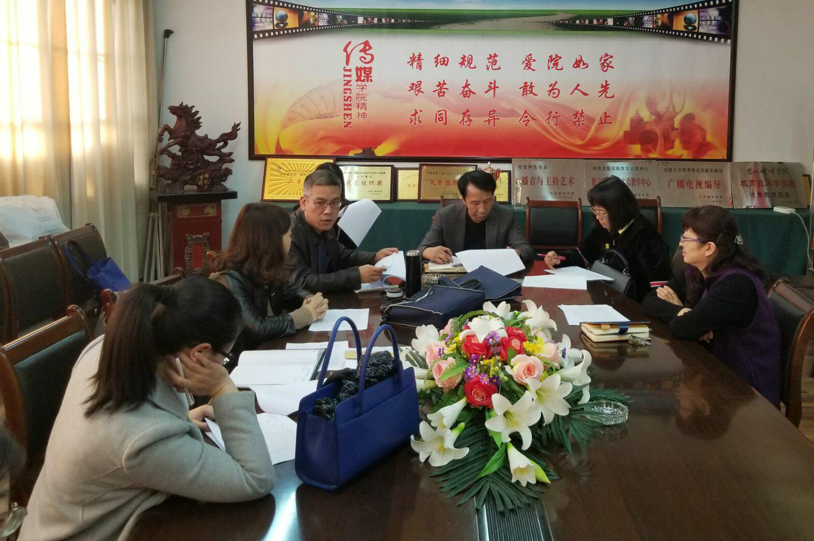 学校领导听取传媒学院各专业建设工作进度汇报。