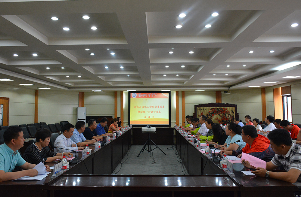 8月30日,北京石油化工学院党委常委何晓红一行20人来伟德考察交流。副校长张兴福致欢迎词、校长助理张社平主持座谈会,相关部门和二级学院负责人参加了座谈会。