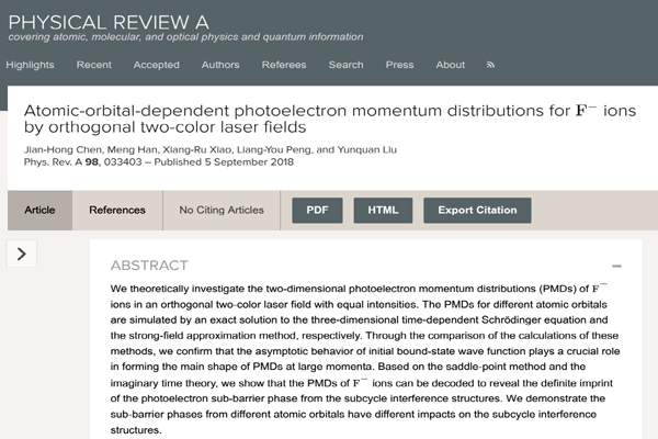陈建宏博士在A2类权威期刊Phys.Rev.A发表论文。
