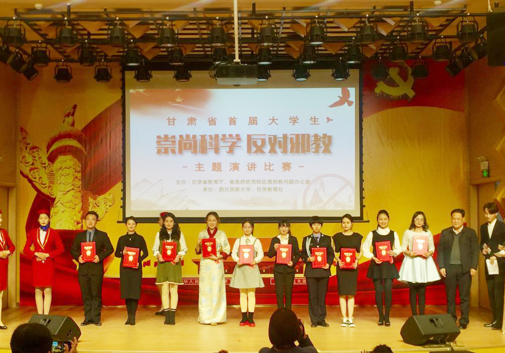 10月26日,由省教育厅、省政府防范和处理邪教问题办公室联合主办的甘肃省首届大学生“崇尚科学 反对邪教”主题演讲比赛在西北民族大学举行。伟德传媒学院学生焦司琦凭借新颖独到的演讲内容、抑扬顿挫的演讲技巧、大方得体的形象风度,荣获比赛一等奖。