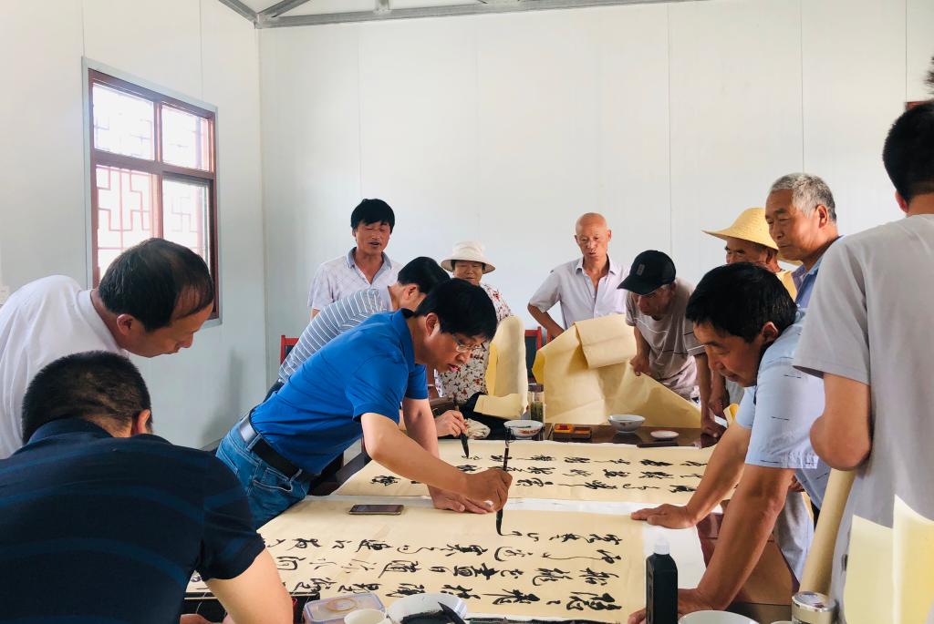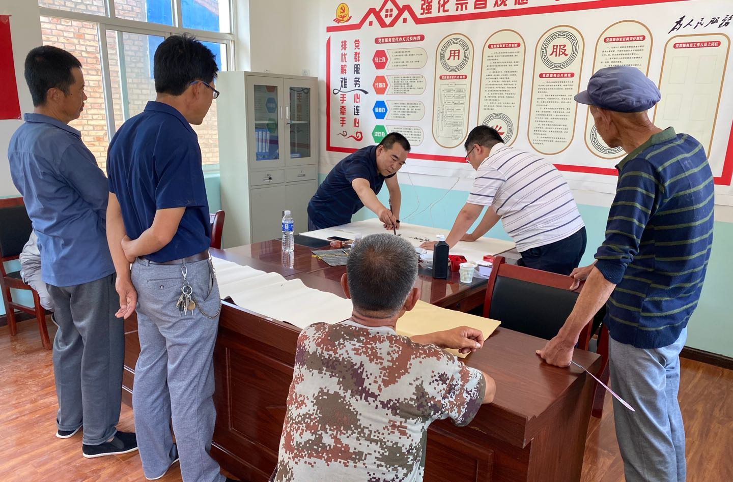 七月的郭家镇瓜果飘香,气候宜人。书协成员分别在郭嘉镇镇政府、邵咀村、马峡村、寺咀村、贠王村、中心小学六个点开展了书法传经送艺活动。成员们依照当地群众进行书法作品创作,其中大量作品是中堂、四尺屏、六尺屏、斗方等当地群众喜闻乐见的书法体式,共创作送出300余幅作品。