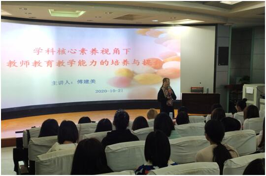 10月21日上午,兰州市外国语学校的“金城名师”付建美作了题为《学科核心素养视角下的教师课堂教学能力的培养与提升》的讲座。讲座中,她全面解读了英语学科核心素养和初中英语新课标,同时结合初中英语教学实际和中考改革为师生们分享了提升初中英语教师教学能力的方法和技巧。