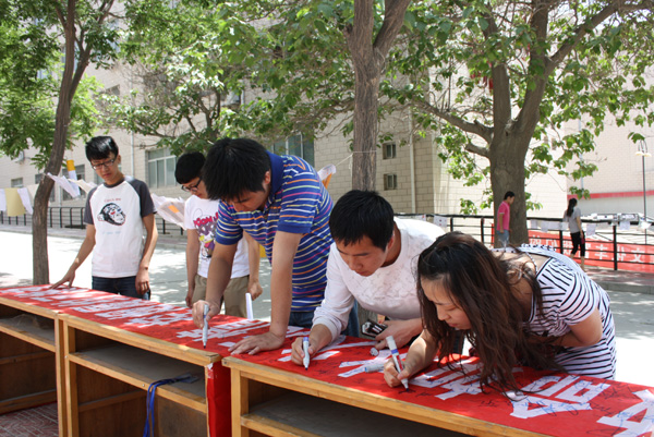 珍爱生命,从戒烟开始。5月31日是世界无烟日,由校学生会、青年志愿者协会主办,各学院学生分会承办的“校园无烟日宣传活动”在校本部和培黎校区分别举行。此次活动共收到各学院的百余幅漫画,在读书长廊和教学区集中展出,通过同学们喜闻乐见的漫画形式,生动地向广大同学展示了烟草的危害。看过漫画后,同学纷纷在校青年志愿者协会“杜绝烟草、从我做起”的横幅上签名,表示要争做一名无烟志愿者。