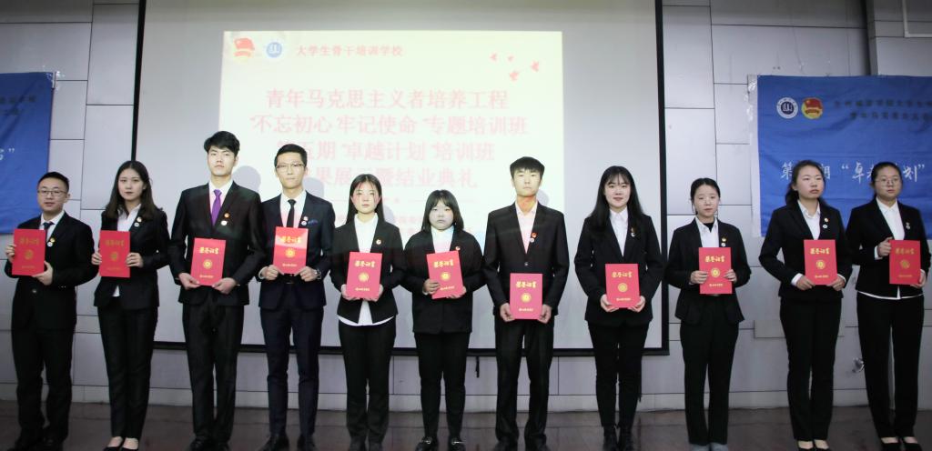 仪式上,校团委负责人作了题为《聚焦青年学生存在问题,服务青年学子成长成才》的报告。报告从校团委在近期“不忘初心、牢记使命”主题教育中调研出的学生中存在的部分青年学生没有认识到政治理论学习的必要性和重要性,部分青年学生“钟情”于手机、沉迷于网络,部分学生心理承受能力差、抗压能力低,部分学生干部中存在官僚主义作风等四个问题和产生的原因与学生进行了深入交流,并鼓励学生骨干多读理论之书、多做理论思考,认真学习习近平总书记在全国教育大会上的重要讲话精神,坚定对共产主义和中国特色社会主义的执着信仰,牢固树立“只为青年友、不为青年官”的意识,做德智体美劳全面发展的社会主义建设者和接班人,成长为新时代青年马克思主义者。培训班学员代表旅游学院徐国钰、培黎石油工程学院杨天昊、化学化工学院魏晓萱三位同学从学生干部自我约束、基层团组织建设、志愿服务项目发展三个方面分享了自己在一个月培训中的所见所想。同学们纷纷表示,通过培训,自己在理论上、精神上和知识上都得到了升华。今后的学习、生活中要学以致用,争当先锋模范,甘于奉献社会,做一名马克思主义的积极传播者和践行者。